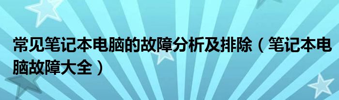 大家好,来宝来为大家解答以下问题,常见笔记本电脑的故障分析及排除,笔记本电脑故障大全很多人还不知道,今天让我们一起来看看吧!