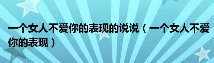 大家好,小晋来为大家解答以下问题,关于一个女人不爱你的表现的说说,一个女人不爱你的表现很多人还不知道,今天让我们一起来看看吧!