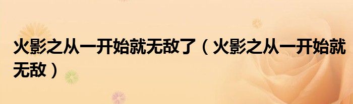 关于火影之从一开始就无敌了,火影之从一开始就无敌这个很多人还不知道,今天菲菲来为大家解答以上的问题,现在让我们一起来看看吧!