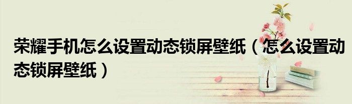 荣耀手机怎么设置动态锁屏壁纸(怎么设置动态锁屏壁纸)