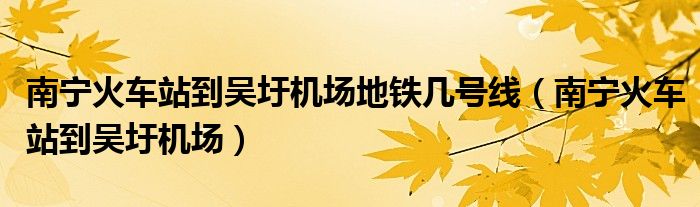 关于南宁火车站到吴圩机场地铁几号线,南宁火车站到吴圩机场这个很多人还不知道,今天菲菲来为大家解答以上的问题,现在让我们一起来看看吧!