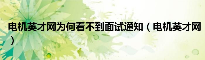 关于电机英才网为何看不到面试通知,电机英才网这个很多人还不知道,今天菲菲来为大家解答以上的问题,现在让我们一起来看看吧!