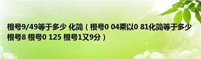 关于根号9/49等于多少 化简,根号0 04乘以0 81化简等于多少 根号8 根号0 125 根号1又9分这个很多人还不知道,今天菲菲来为大家解答以上的问题,现在让我们一起来看看吧!