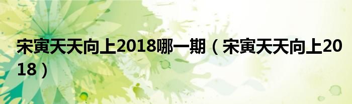 关于宋寅天天向上2018哪一期,宋寅天天向上2018这个很多人还不知道,今天菲菲来为大家解答以上的问题,现在让我们一起来看看吧!