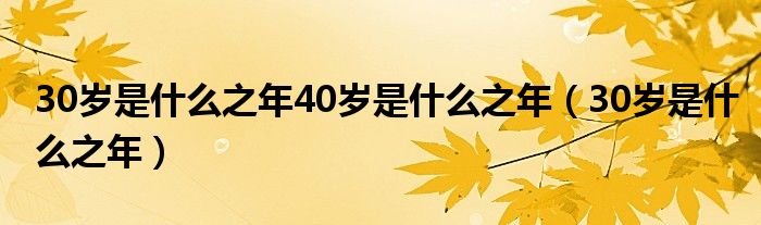 关于30岁是什么之年40岁是什么之年,30岁是什么之年这个很多人还不知道,今天菲菲来为大家解答以上的问题,现在让我们一起来看看吧!