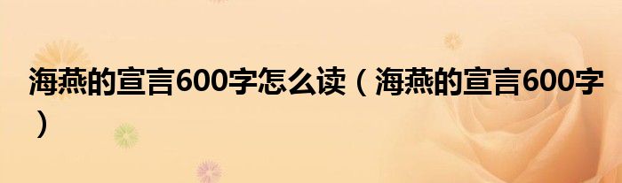 关于海燕的宣言600字怎么读,海燕的宣言600字这个很多人还不知道,今天菲菲来为大家解答以上的问题,现在让我们一起来看看吧!