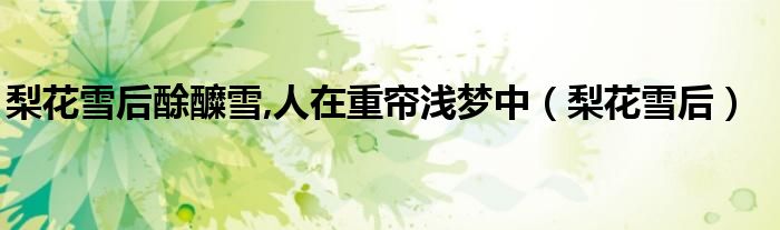 关于梨花雪后酴醾雪,人在重帘浅梦中,梨花雪后这个很多人还不知道,今天菲菲来为大家解答以上的问题,现在让我们一起来看看吧!