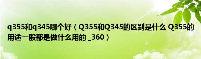 关于q355和q345哪个好,Q355和Q345的区别是什么 Q355的用途一般都是做什么用的 _360这个很多人还不知道,今天菲菲来为大家解答以上的问题,现在让我们一起来看看吧!