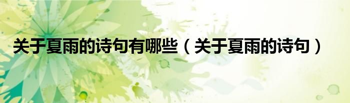 关于关于夏雨的诗句有哪些,关于夏雨的诗句这个很多人还不知道,今天菲菲来为大家解答以上的问题,现在让我们一起来看看吧!