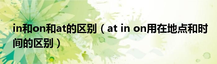 关于in和on和at的区别,at in on用在地点和时间的区别这个很多人还不知道,今天菲菲来为大家解答以上的问题,现在让我们一起来看看吧!