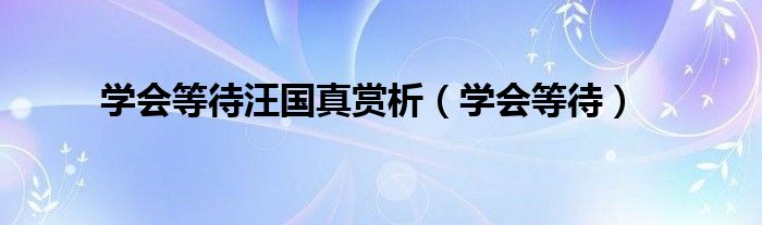 关于学会等待汪国真赏析,学会等待这个很多人还不知道,今天菲菲来为大家解答以上的问题,现在让我们一起来看看吧!