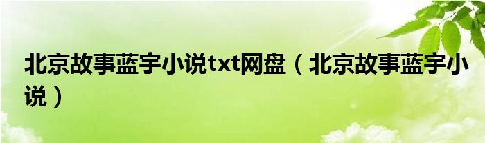 关于北京故事蓝宇小说txt网盘,北京故事蓝宇小说这个很多人还不知道,今天菲菲来为大家解答以上的问题,现在让我们一起来看看吧!