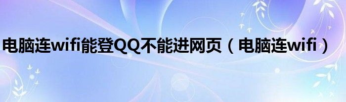 大家好,小晋来为大家解答以下问题,关于电脑连wifi能登QQ不能进网页,电脑连wifi很多人还不知道,今天让我们一起来看看吧!