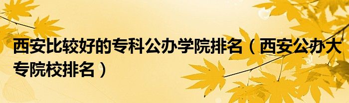 关于西安比较好的专科公办学院排名,西安公办大专院校排名这个很多人还不知道,今天菲菲来为大家解答以上的问题,现在让我们一起来看看吧!
