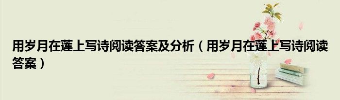 关于用岁月在莲上写诗阅读答案及分析,用岁月在莲上写诗阅读答案这个很多人还不知道,今天菲菲来为大家解答以上的问题,现在让我们一起来看看吧!