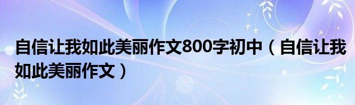 关于自信让我如此美丽作文800字初中,自信让我如此美丽作文这个很多人还不知道,今天菲菲来为大家解答以上的问题,现在让我们一起来看看吧!