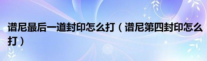 关于谱尼最后一道封印怎么打,谱尼第四封印怎么打这个很多人还不知道,今天菲菲来为大家解答以上的问题,现在让我们一起来看看吧!