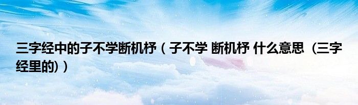 关于三字经中的子不学断机杼,子不学 断机杼 什么意思 (三字经里的)这个很多人还不知道,今天菲菲来为大家解答以上的问题,现在让我们一起来看看吧!