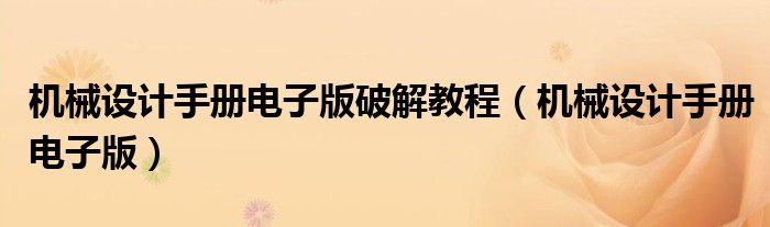 关于机械设计手册电子版破解教程,机械设计手册电子版这个很多人还不知道,今天菲菲来为大家解答以上的问题,现在让我们一起来看看吧!
