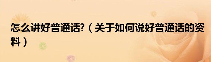 关于怎么讲好普通话?,关于如何说好普通话的资料这个很多人还不知道,今天菲菲来为大家解答以上的问题,现在让我们一起来看看吧!