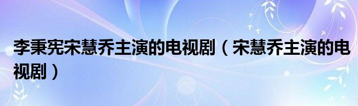 关于李秉宪宋慧乔主演的电视剧,宋慧乔主演的电视剧这个很多人还不知道,今天菲菲来为大家解答以上的问题,现在让我们一起来看看吧!