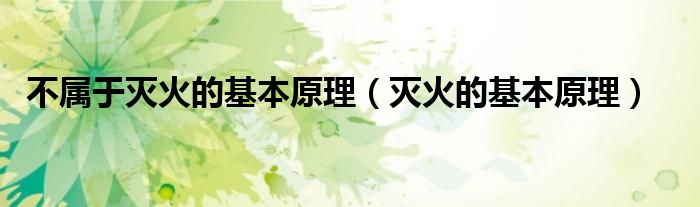 关于不属于灭火的基本原理,灭火的基本原理这个很多人还不知道,今天菲菲来为大家解答以上的问题,现在让我们一起来看看吧!