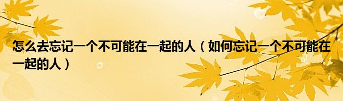 关于怎么去忘记一个不可能在一起的人,如何忘记一个不可能在一起的人这个很多人还不知道,今天菲菲来为大家解答以上的问题,现在让我们一起来看看吧!