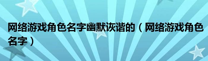 关于网络游戏角色名字幽默诙谐的,网络游戏角色名字这个很多人还不知道,今天菲菲来为大家解答以上的问题,现在让我们一起来看看吧!