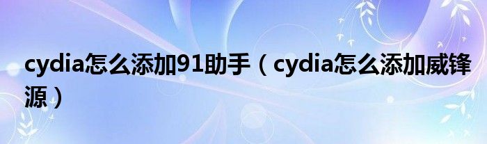 cydia怎么添加91助手,cydia怎么添加威锋源很多人还不知道,乐乐来为大家解答以上问题,现在让我们一起来看看吧!