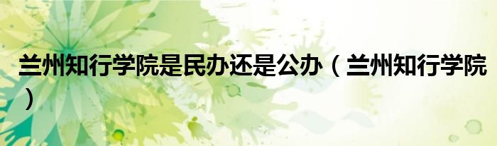 关于兰州知行学院是民办还是公办,兰州知行学院这个很多人还不知道,今天菲菲来为大家解答以上的问题,现在让我们一起来看看吧!