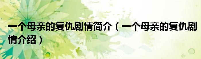 大家好,小晋来为大家解答以下问题,关于一个母亲的复仇剧情简介,一个母亲的复仇剧情介绍很多人还不知道,今天让我们一起来看看吧!