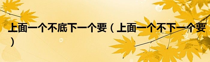 关于上面一个不底下一个要,上面一个不下一个要这个很多人还不知道,今天菲菲来为大家解答以上的问题,现在让我们一起来看看吧!