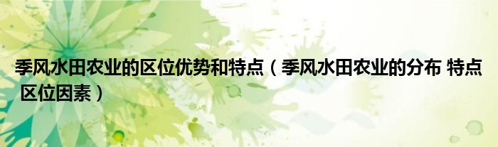 关于季风水田农业的区位优势和特点,季风水田农业的分布 特点 区位因素这个很多人还不知道,今天菲菲来为大家解答以上的问题,现在让我们一起来看看吧!