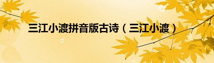 关于三江小渡拼音版古诗,三江小渡这个很多人还不知道,今天菲菲来为大家解答以上的问题,现在让我们一起来看看吧!