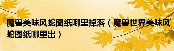 关于魔兽美味风蛇图纸哪里掉落,魔兽世界美味风蛇图纸哪里出这个很多人还不知道,今天菲菲来为大家解答以上的问题,现在让我们一起来看看吧!