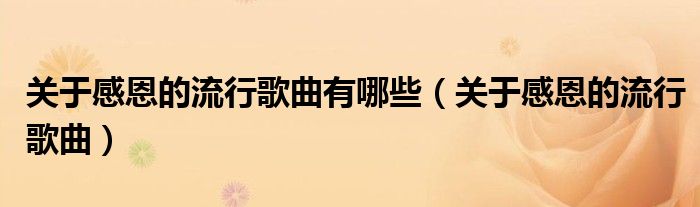 关于关于感恩的流行歌曲有哪些,关于感恩的流行歌曲这个很多人还不知道,今天菲菲来为大家解答以上的问题,现在让我们一起来看看吧!