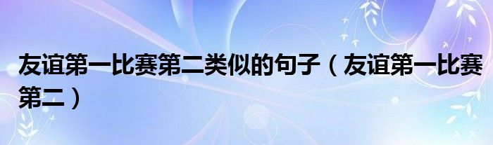 关于友谊第一比赛第二类似的句子,友谊第一比赛第二这个很多人还不知道,今天菲菲来为大家解答以上的问题,现在让我们一起来看看吧!