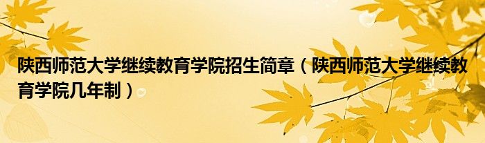 关于陕西师范大学继续教育学院招生简章,陕西师范大学继续教育学院几年制这个很多人还不知道,今天菲菲来为大家解答以上的问题,现在让我们一起来看看吧!