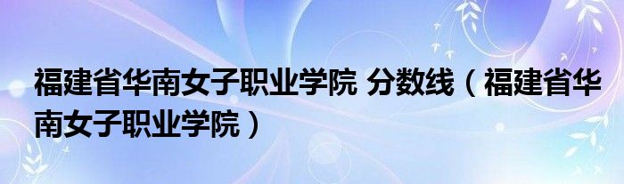 福建省华南女子职业学院 分数线(福建省华南女子职业学院)