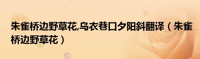 关于朱雀桥边野草花,乌衣巷口夕阳斜翻译,朱雀桥边野草花这个很多人还不知道,今天菲菲来为大家解答以上的问题,现在让我们一起来看看吧!