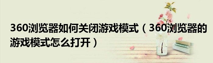 360浏览器如何关闭游戏模式(360浏览器的游戏模式怎么打开)