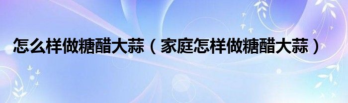 关于怎么样做糖醋大蒜,家庭怎样做糖醋大蒜这个很多人还不知道,今天菲菲来为大家解答以上的问题,现在让我们一起来看看吧!
