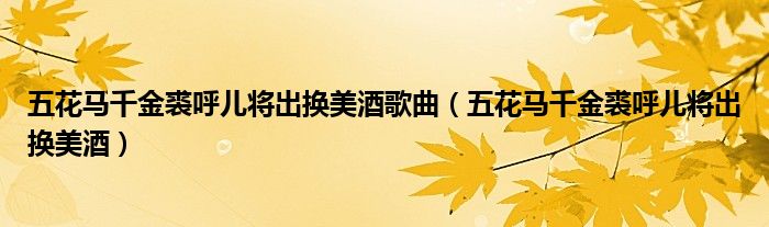 关于五花马千金裘呼儿将出换美酒歌曲,五花马千金裘呼儿将出换美酒这个很多人还不知道,今天菲菲来为大家解答以上的问题,现在让我们一起来看看吧!