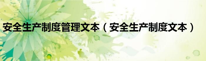 关于安全生产制度管理文本,安全生产制度文本这个很多人还不知道,今天菲菲来为大家解答以上的问题,现在让我们一起来看看吧!